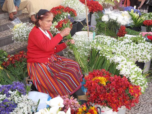Madeira staat bekend als het bloemeneiland met traditionele bloemenvrouwen.