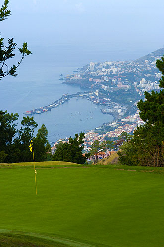 5 minuten van het vliegveld en 18 kilometer van Funchal ligt Santo da Serra, de baan waar van 1993 tot 2009 het Madeira Open werd gespeeld. In 1931 als 9 holes par 3 baan begonnen is Santo da Serra inmiddels uitgegroeid tot een golfcomplex met drie lussen van 9 holes, en uitgebreide oefenfaciliteiten. Het Madeira Open wordt sinds 1993 gespeeld op de combinatie Machico/Dessertas die door Robert Trent Jones is ontworpen en in 1991 werd opgeleverd. Aan de lengte van de baan kun je zien dat we hier te maken hebben met een moderne baan. Vanaf de Championship tees meet deze combinatie 6.241 meter, van de gele tees 5.753 meter, en van de rode tees 5.147 meter. Hier is het verschil tussen de Championship tees en de gele tees een behoorlijke par 5 (488 meter!). Hoewel Santo da Serras minder hoog gelegen is dan Palheiro kom je ook hier fantastische uitzichten tegen. Holes 2 en 4 van de Machico Course zijn de holes die door de tourspelers als de meest aansprekende holes worden aangemerkt. Hole 2 is een par 4 van 403 meter (voor de Pro’s) met een uitdagend teeshot over een diep ravijn om de fairway te bereiken. Hole 4 is een par 3 van 185 meter van tee tot green met daartussen alleen maar ravijn. Nou lijkt 185 meter voor een Pro niet zo overdreven, maar op deze hole heeft de altijd aanwezige wind wel vrij spel en wordt de green toch wel erg klein! Zoals te verwachten zijn de fairways en de greens van een zeer hoge kwaliteit. De bekende uitdrukking “als een tapijtje” komt onwillekeurig in mijn gedachten als ik hier de greens betreed. De tweede negen (Dessertas Course) lijken wat ingetogener van karakter dan de eerste negen (Machico Course), maar vergis je niet! Ook hier heb je goed course management en goede slagen nodig om veilig rond te komen. Vanzelfsprekend is het ook hier goed toeven in het in 2000 nieuw opgeleverde clubhuis. Het clubhuis is zeer luxe ingericht en heeft naast een shop ook een fitness. Ook hier vanaf het terras weer mooie uitzichten over de baan! Tja, wat kun je over zo’n baan verder nog zeggen, pure klasse!