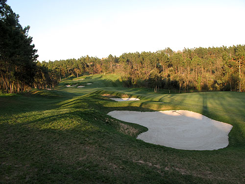 Hoewel alle 18 holes mooie holes zijn, zal ik er toch een paar beschrijven. Hole 3 is een par 5 van 457 meter met aan het einde een lichte dogleg naar links en is één van de weinige holes met een green die niet verhoogd is maar die ter compensatie langs de rechterkant beschermd wordt door bunkers en links en achter als een hoefijzer door water wordt omarmd waarbij de green afloopt naar het water, een prachtige hole. Hole 9, een par 4 van 392 meter met een dogleg naar rechts is volgens de stroke index de moeilijkste hole van de baan. Op deze hole heb je vanaf de verhoogde tee een afslag nodig van minstens 220 meter om een vrije slag naar de green over te houden. Hoewel de slag naar de green ook nog van een hoger gelegen positie is, is de slag naar de green toch niet eenvoudig omdat je de green over een dalletje aan moet spelen en de green aan de voorkant door drie bunkers wordt bewaakt en aan de zijkanten afloopt naar de lager gelegen bomen. Deze 9e hole wordt door veel spelers aangemerkt als de signature hole van de baan.