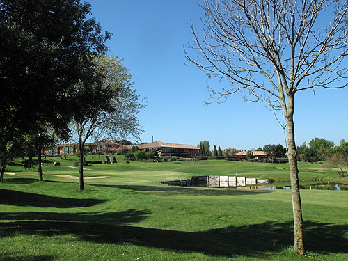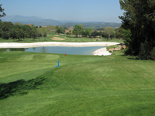 Eén van de opvallende holes is hole 7, een par 4 dogleg naar links van 353 meter vanaf een verhoogde tee over een waterbassin, na een goede afslag in de knik van de dogleg word je dan getrakteerd op een fantastisch uitzicht op de met sneeuw bedekte bergtoppen van de Pyreneeën achter de green. Hole 18 tenslotte, een par 5 van 464 meter met aan het einde een dogleg naar rechts, is een uitdagende slothole. Van de verhoogde tee heb je een mooi uitzicht op het clubhuis achter de green die wordt bewaakt door een waterhindernis. Er is voldoende ruimte om flink uit te halen met de afslag, maar de tweede slag zorgt voor een dilemma. Bij een goede afslag is het mogelijk om met de tweede slag de green aan te vallen, maar een te korte slag verdwijnt onherroepelijk in de waterhindernis. Overleg bij het uitspelen van de laatste hole is dus nog wel even nodig. Het clubhuis maakt deel uit van het bijbehorende hotel en heeft zoals in Spanje verwacht mag worden een goede keuken. Na een rondje golf in de ochtend kan er heerlijk op zijn Spaans uitgebreid geluncht worden in het clubhuis.