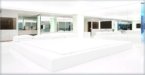 Maar hier houdt het nog niet op, Adam & Eve Hotels onderscheidt zich ook nog op andere gebieden van de reguliere luxe 5-sterren hotels. Wij hebben hier te maken met een trendy design hotel in optima forma, zo zijn alle kamers in het wit uitgevoerd en bestaan de muren uit spiegels van vloer tot plafond die zelfs zijn doorgetrokken tot op het balkon. Hierdoor is in elke kamer wel op de één of andere manier de zee zichtbaar in de spiegels. Alle kamers beschikken over een badkamer met douche en stoombad, en in elke standaardkamer staat een jacuzzibad in de hoek van de kamer! En daarmee is de koek nog niet op, iedere kamer heeft de beschikking over een tweepersoons futon als bed om in te slapen, een tweepersoons futon met loungekussens om op te relaxen, en op het balkon staat nog een derde tweepersoons futon met loungekussens om op te relaxen! Kortom, in principe heb je de beschikking over drie tweepersoons bedden! Ook de kamerverlichting is bijzonder, het plafond bestaat namelijk uit een diffuus paneel waardoor de kamer verlicht wordt. Klinkt nog redelijk normaal, maar door middel van een afstandsbediening kan voor de kleur van verlichting gekozen worden, of voor automatisch afwisselende kleuren, of voor kleuren die op geluid en muziek reageren en daardoor van kleur verandert. Oh ja, gewoon normaal rustig wit licht om bij te lezen kan ook!