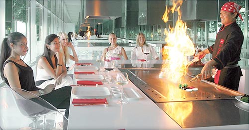Er zijn in het hotel 8 verschillende specialiteiten restaurants te vinden en een spectaculaire bar van 96 meter lang die aan één kant eindigt in een podium waar ’s-avonds door go-go girls wordt gedanst! De bar bevindt zich in een ruimte van 175 meter lengte (een stevige par-3) met een 25 meter hoog plafond dat bestaat uit ruim 5 miljoen spiegeltegeltjes van 5x5cm, extravaganza ten top waar met 3.000 man gefeest kan worden! Als je het ergens mee wil en kan vergelijken, dan moet je denken aan de enorme clubs en feestpaleizen op Ibiza en in Las Vegas. Tijdens het seizoen is dit dan ook “The Place To Be” waar de hipste toeristen en inwoners van Belek en omstreken elkaar treffen. Iedere avond is er wel één of andere party of evenement met go-go danseressen, laser shows en oorverdovende muziek.