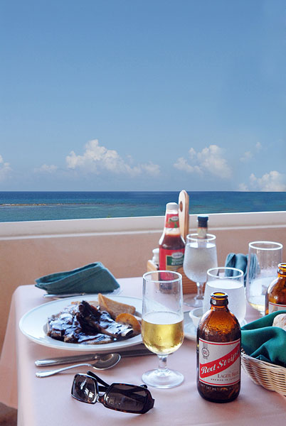 Eten en drinken is voor de Jamaicaan net zo belangrijk als ademhalen. Populair zijn de pittig gekruide “jerk” gerechten. “Jerk” is een pittige kruidenpasta die gebruikt wordt bij de bereiding van bijvoorbeeld geroosterd varkensvlees, kip, vis en diverse worsten. Het Jamaicaanse Red Stripe Beer is de perfecte begeleider bij deze gerechten. Verder wordt er natuurlijk veel rum gedronken, in cocktails, puur, on the rocks maar ook na het eten als digestief de speciale oude rumsoorten, hmmm lekker!