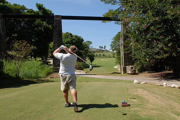 Tryall Golf Club is de Johnnie Walker Championship Course. Jawel, van de Johnnie Walker World Championships. Een prachtige en spectaculaire baan met adembenemende uitzichten en uitdagende holes. Van vrijwel overal op de baan heb je uitzicht op de zee. De greens zijn natuurlijk ontzettend snel en moeilijk te lezen. Maar goed dat ik Flavous als caddie heb meegekregen. Flavous kan vrijwel blind van elke positie op de green kan aangeven wat de lijn is en is tot nu toe mijn beste caddie. Hij geeft mij na een paar holes feilloos de juiste club aan, helpt wat met mijn techniek en zorgt dat ik uiteindelijk met 82 slagen binnenkom. Spectaculaire holes zijn hole 15, een par-3 langs de zee over een inham en hole 18, een par 5 waarvan de afslag spectaculair door een stenen boog geslagen wordt. Ja, deze baan maakt zijn reputatie als Johnnie Walker Chamionship Course volledig waar.