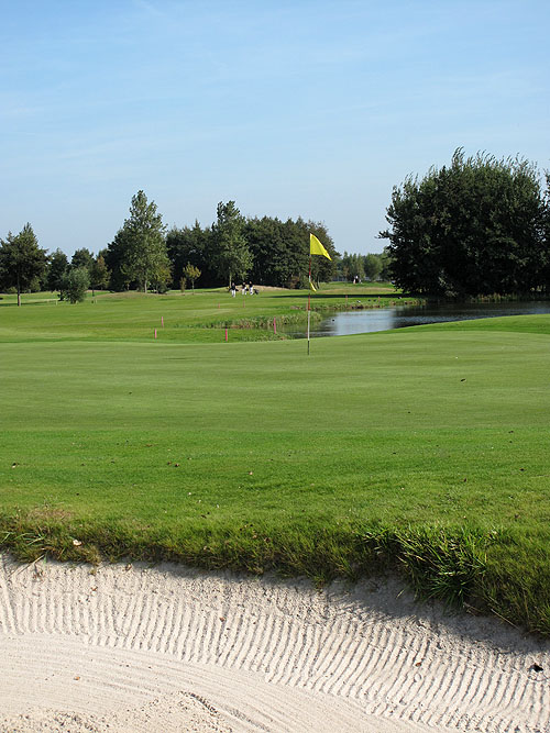 Hole 18, de slothole, is een leuke par 4 van 338 meter met een uitdagende slag naar de semi eilandgreen. Hier kan een goede score nog teniet gedaan worden of extra puntjes verdiend worden. Het is opvallend dat holes 7, 13 en 15 voor de dames en de heren een verschillende par hebben, dat zie je niet vaak.