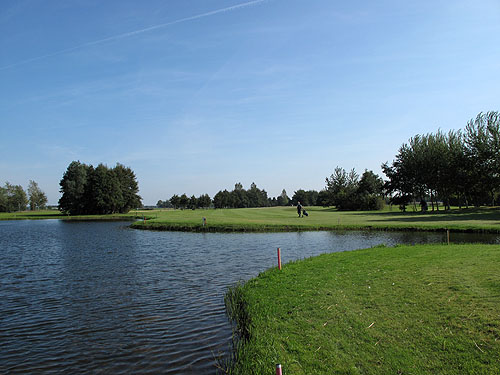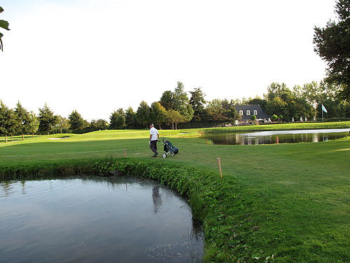 Hole 13 is een par 5 van 441 meter (voor de dames een par 4 van 379 meter) is bij de afslag uitdagend vanwege het water direct links bij de afslag en het water rechts op driving distance. In principe is de green voor spelers met een redelijke lengte in twee te halen, maar dan vergt de slag naar de green wel de nodige precisie vanwege het water rechts voor de green. Een extra moeilijkheid op deze hole is dat de eerste 150 meter direct rechts van de afslag out-of-bounds is. In mijn ogen de mooiste hole is hole 14. Een par 4 van slechts 318 meter die vanwege het vele water links langs de hole en het water links van en voor de green met beleid en precisie gespeeld moet worden.