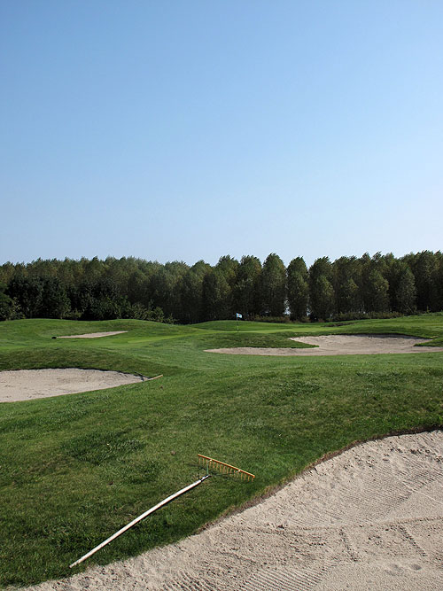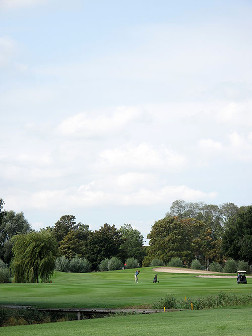 De blauwe lus die ik eerst bespreek is niet specifiek een polderbaan of een parkbaan, maar een combinatie daarvan met gevarieerde en uitdagende holes. Wel is de semi-rough van een dikke taaie soort en qua lengte dusdanig dat een bal niet makkelijk wordt teruggevonden. Ook al ziet iedereen waar de bal terecht komt is het geen overbodige luxe om voor de zekerheid toch een provissional te spelen. En wordt de bal toch gevonden, wees dan niet eigenwijs en speel de bal gewoon terug naar de fairway in plaats van te proberen de bal met lengte uit de semi-rough te spelen. De meeste pogingen zullen jammerlijk mislukken.