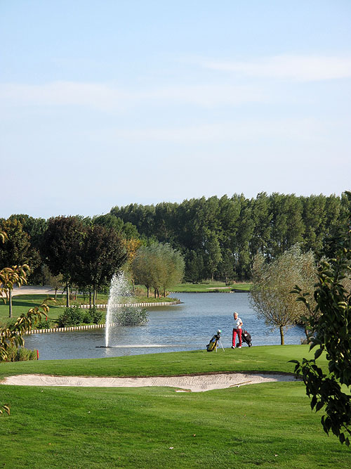 Oh ja, toch ook nog even hole 9 omdat de slothole in dit geval een uitdagende par-3 van 180 meter over water is die je ronde nog net even dat extra beetje glans kan geven of net kan verpesten als het er net nog om gaat. Tsja, wat kan ik zeggen. De combinatie Blauw-Wit beschikt over veel variatie en moet beslist met veel verstand gespeeld worden. Longhitters zijn beslist in het voordeel, maar dan moet het met de precisie wel goed zitten.