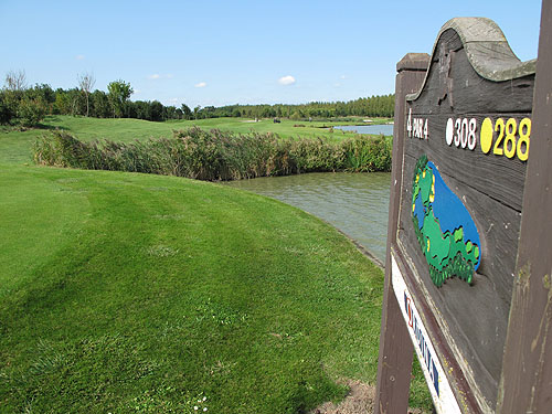 Van de blauwe lus is hole 7 zeker de signature hole. Op deze par 4 van slechts 280 meter moet diagonaal over een sloot heen afgeslagen worden. En hoewel de lengte voor niemand een probleem zal zijn en er echt een brede fairway aanwezig is, belanden toch veel afslagen in het water of aan de verkeerde kant van de sloot. Wat op deze hole bij de afslag ook regelmatig gebeurt is dat de bal omgehaald wordt en dan haaks over de fairway in het water links van de fairway belandt. Maar niettemin een prachtige hole!